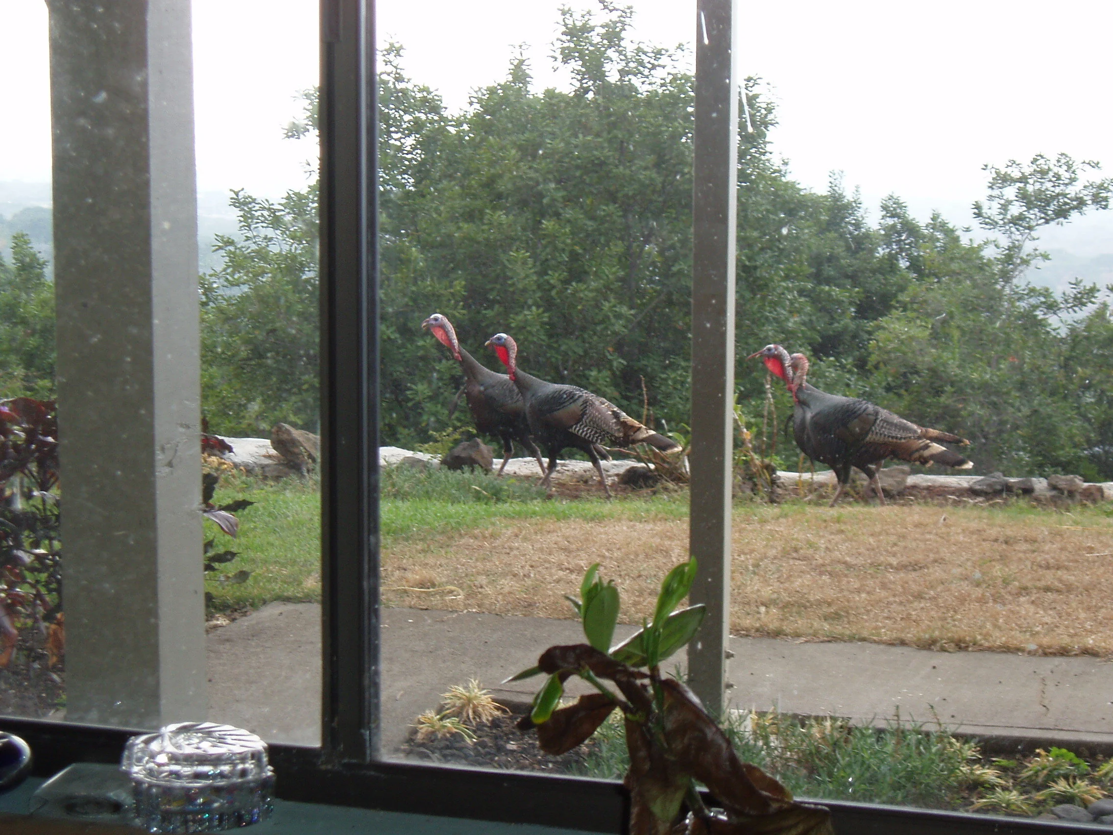 Today I added more photos to the PHOTO page, including the one to the left of wild turkeys outside the workroom window. They were being very quiet and the dogs never knew they were there. Nani and Lihi love to chase turkeys and watch them fly away.